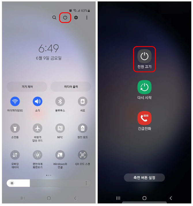 더불어, 전원을 키는 방법은 측면 버튼과 볼륨 버튼을 동시에 길게 누르거나 전원 버튼을 길게 누르면 전원을 킬 수 있습니다. 이상으로 갤럭시 전원 끄는 방법 4가지에 대해 포스팅을 마칩니다. 본 포스팅을 통해 갤럭시 전원 끄는 방법이 궁금하셨던 분들께 도움이 되는 포스팅이었길 바라며, 항상 행복하시길 바랍니다. 끝까지 열람 해 주셔서 감사합니다.