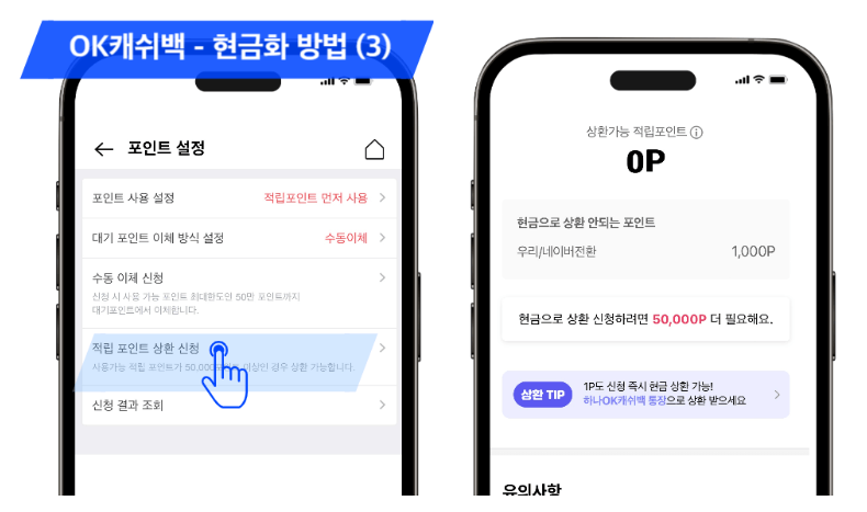 2) OK 캐쉬백 현금화 상세 방법