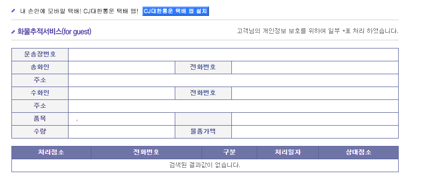 대한통운 택배 조회
