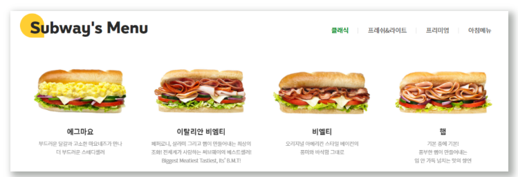 하단에 적어둔 칼로리는 위트빵 기준으로 소스, 치즈를 제거하고 채소는 할라피뇨, 올리브, 피클을 제외한 상태에 측정 된 칼로리를 적어뒀습니다.