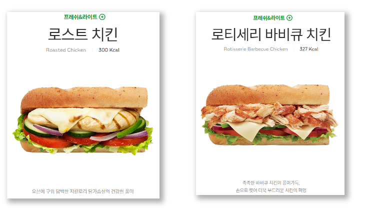 서브웨이는 다른 패스트푸드에 비해 건강에 해롭지 않다는 것을 강조하는 만큼, 실제로 열량이나 포화지방의 함량은 일반 햄버거 브랜드보다 낮습니다. 탄단지 비율 역시 기름진 샌드위치를 제외한 로스트비프나 로스트치킨, 클럽 샌드위치의 경우 압도적으로 좋은 영양비율을 보여주고 있습니다.