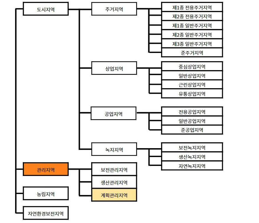 계획관리지역을 설명하기 전 앞서 용도지역이 무엇인지 알고 있어야 하므로 간단하게 설명 드리겠습니다. 용도지역이란 국가가 토지를 효율적으로 관리하기 위해 각 필지를 용도별로 지정하는것으로, 모든 토지는 각자의 용도대로만 토지를 활용할 수 있는 것이기 때문에 본인 소유의 토지라도 본인 마음대로 원하는 건축물을 원하는 크기로 건축할 수 없습니다.