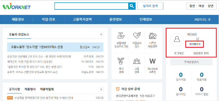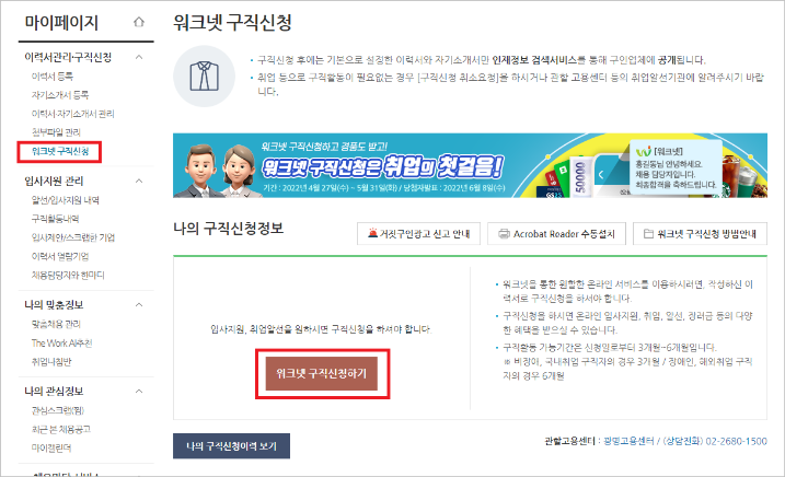 1. 워크넷 구직 신청 방법